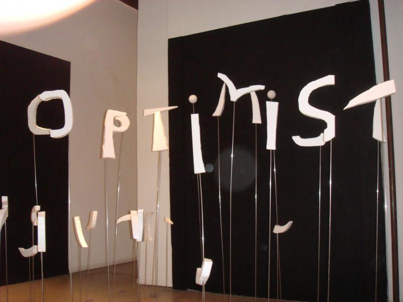 "Realist" - Installation based on perspective of sight and of people. Styrofoam and Stainless steel tubing and decking materials. A self portrait.
