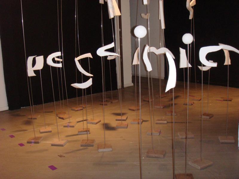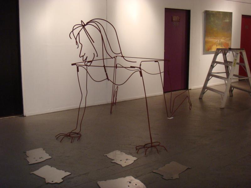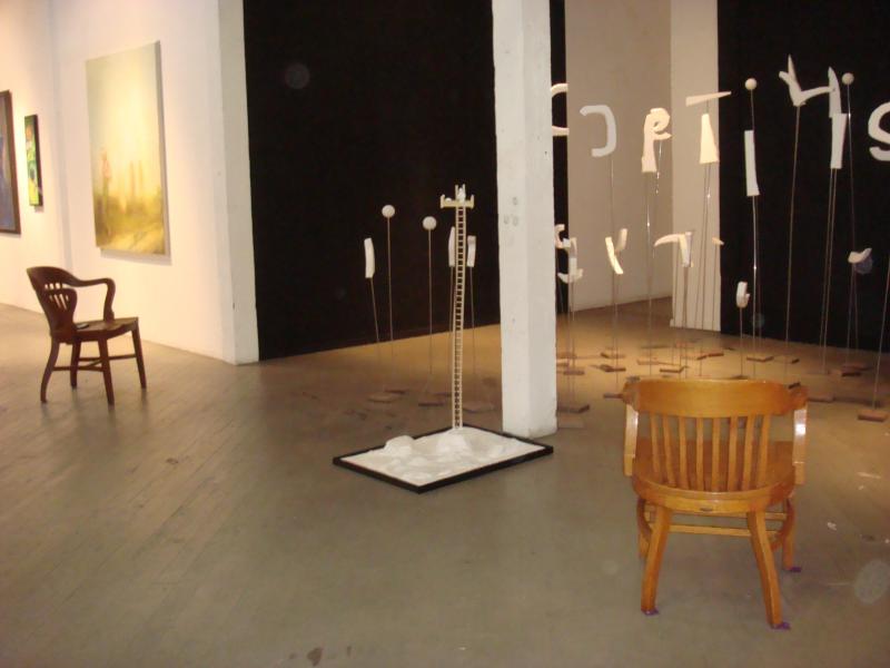 "Realist" - Installation based on perspective of sight and of people. Styrofoam and Stainless steel tubing and decking materials. A self portrait.