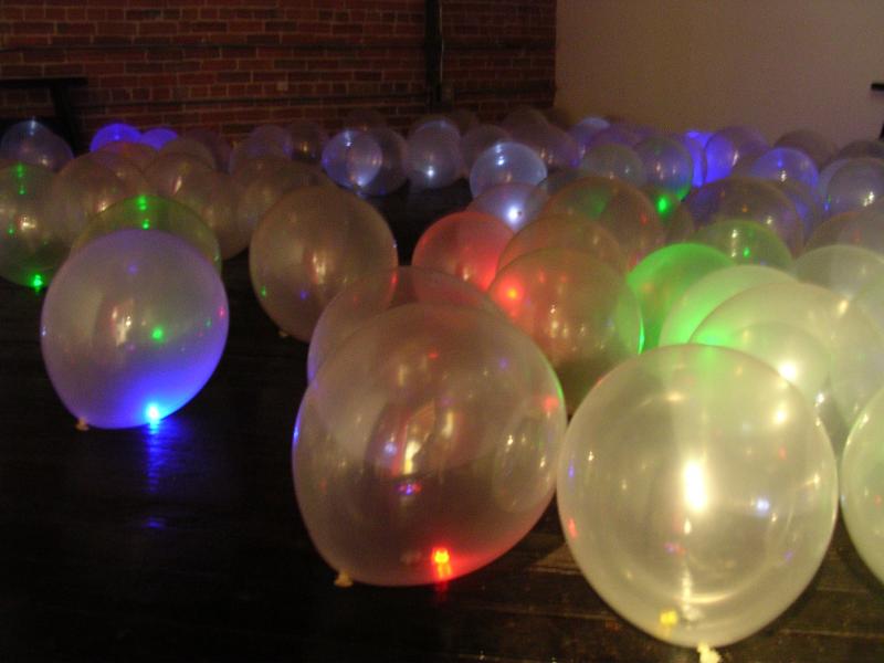 "Hello Darkness" 220 Latex balloons, flled with LED/batteries in a dark room with benches for rest and contemplation. An indoor sculptural garden/Installation dealing with the beauty of darkness and solitude. l