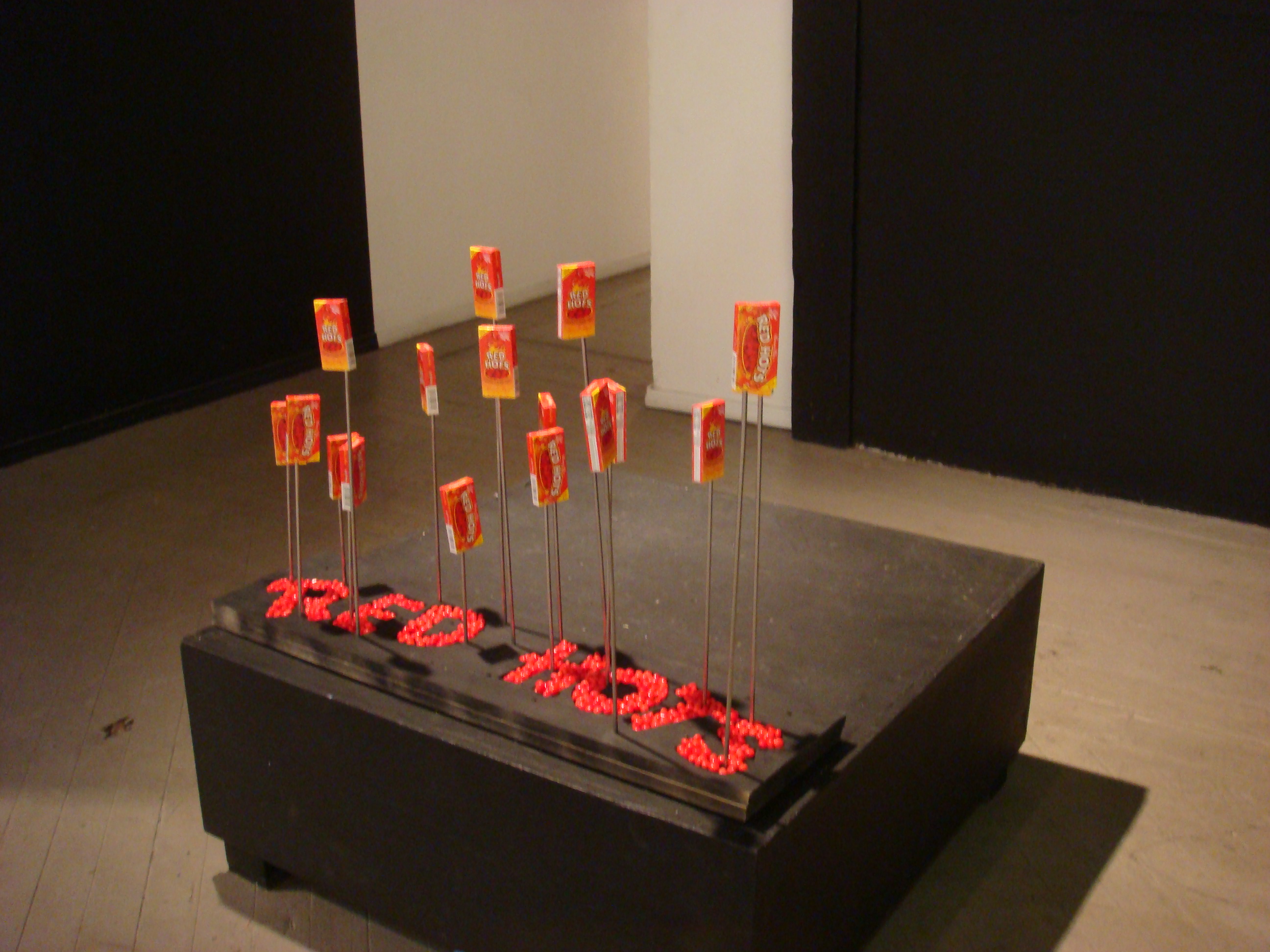 Red Hot Love in the Shadows. With proper lighting, shadows of candy boxes form intertwined hearts. Piece has cinnamon oil infused in base, so hits all five senses.